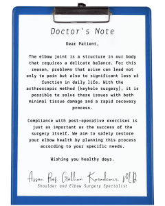 The elbow joint is a complex structure made of bone, cartilage, ligaments, and muscles. For the diagnosis and treatment of problems that develop within these structures, elbow arthroscopy, a minimally invasive surgical method, is being used increasingly often today. Arthroscopy is a closed (keyhole) surgery performed by entering the joint with a special camera and micro-surgical instruments through incisions that are just a few millimeters long.